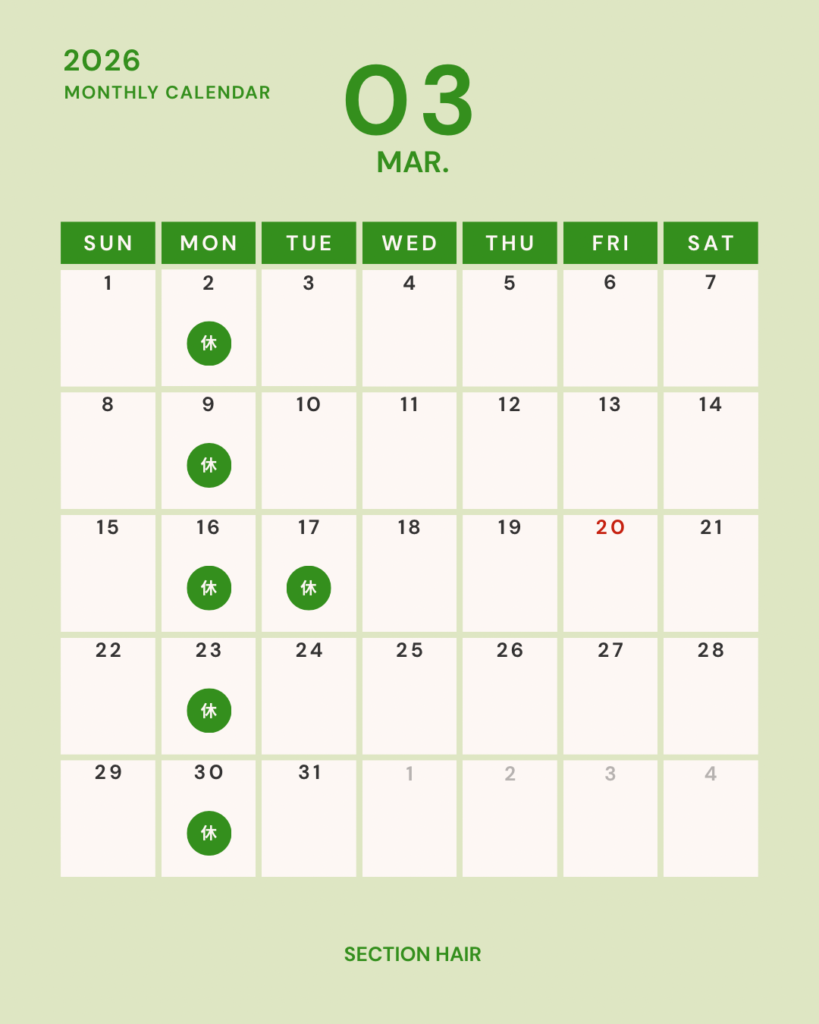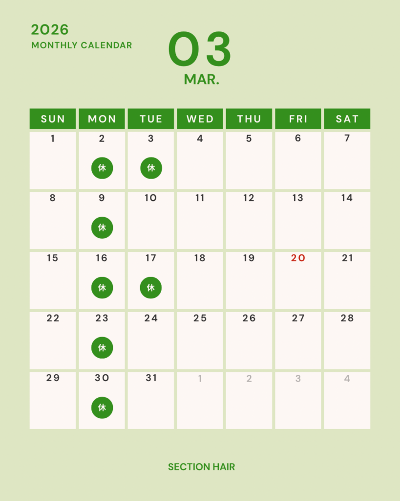 3月はご予約が混み合う可能性がございます。卒業式や入学式、新学期前にお考えの方は早めのご予約をお待ちしております😊